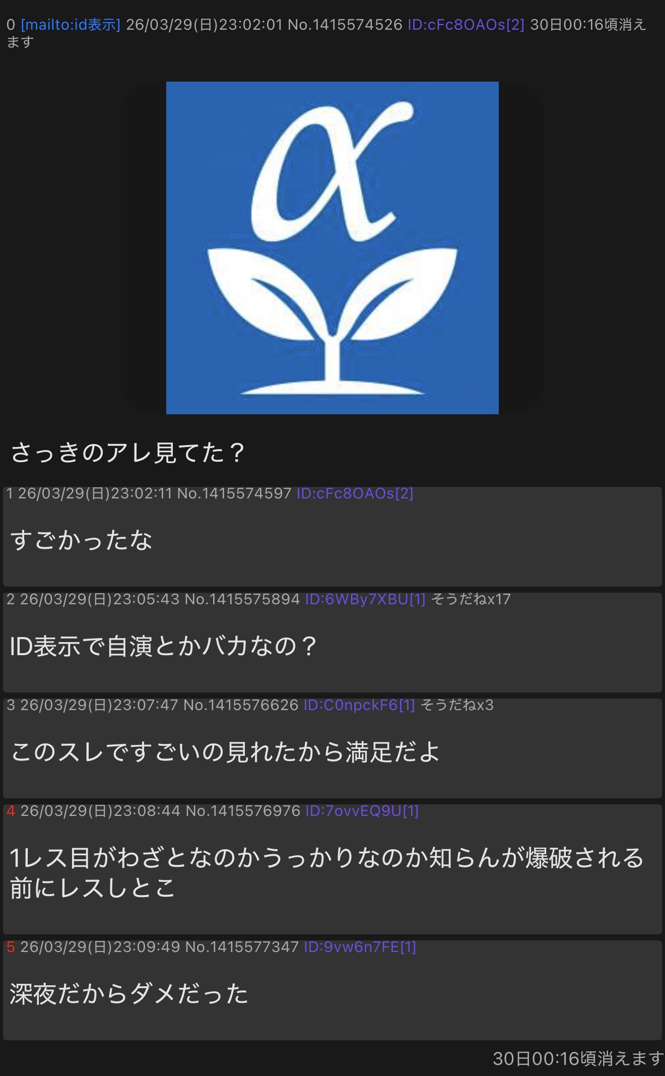 | … | 5726/03/29(日)23:02:12No.1415574604+>ID:6Qnj5VG2 |