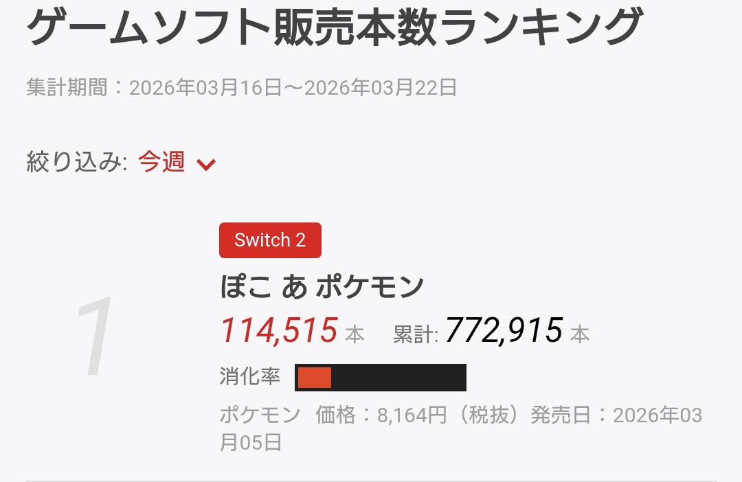 | … | 526/03/29(日)23:42:17No.1415589164そうだねx5>114515本売れたよ |