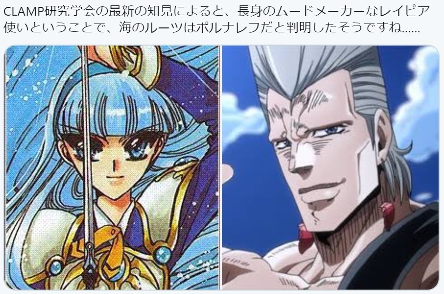 | … | 2226/03/30(月)14:29:21No.1415716651+レイアースはジョジョとグランゾートの好きな要素にCLAMPのファンタジー創作パワーをかけ合わせた作品なので… |