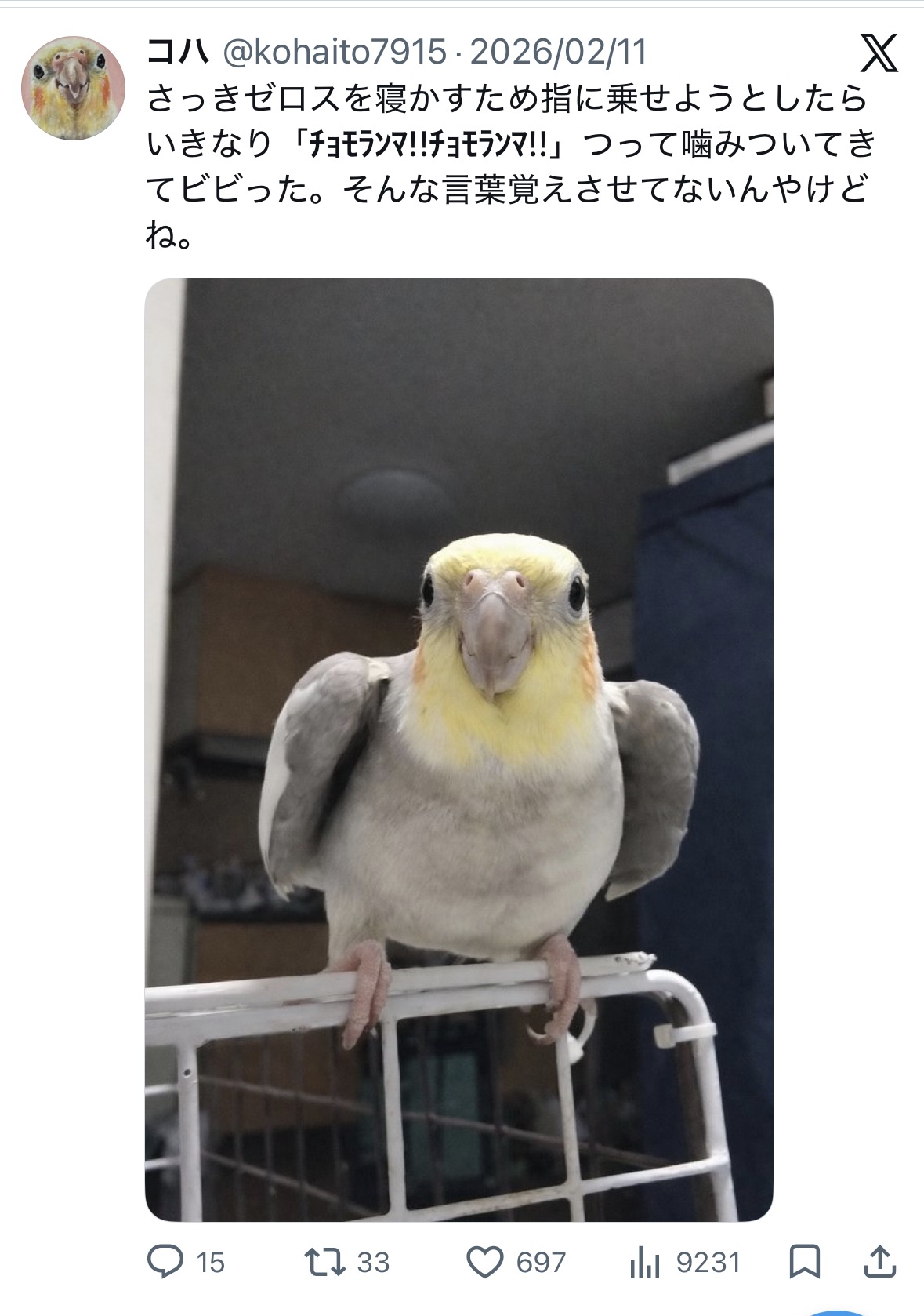 | … | 4226/03/30(月)15:51:41No.1415732922+ヨウムは大型インコだぞ |