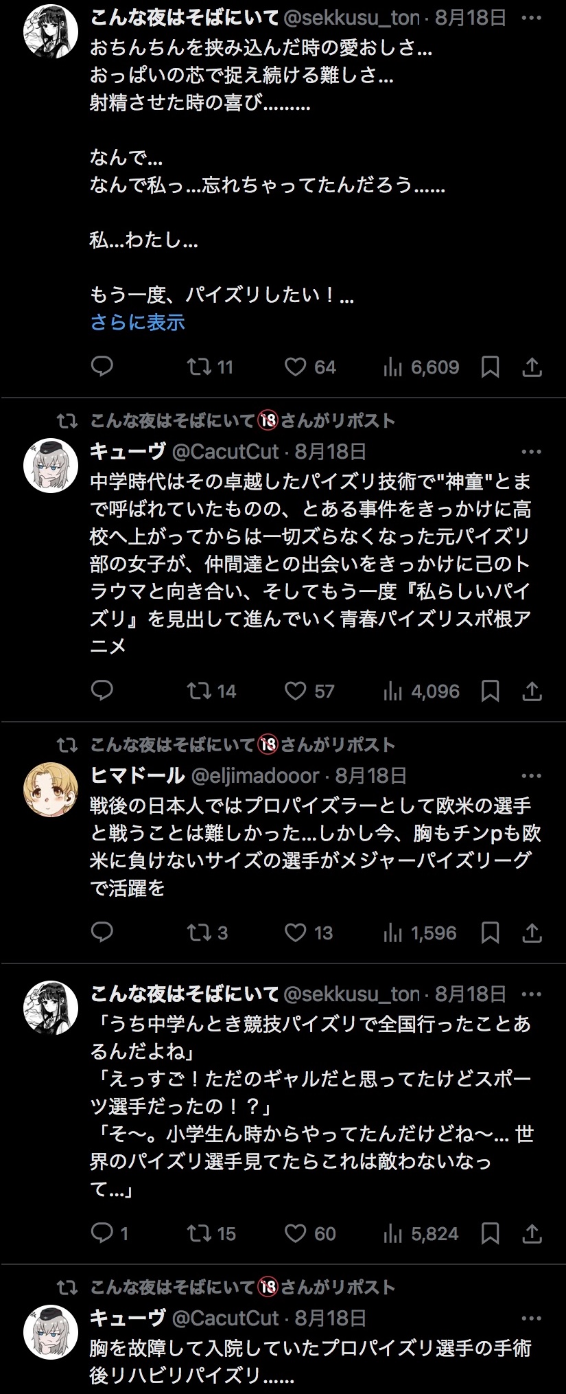 | … | 8026/03/30(月)21:12:09No.1415830918+>俺は必ず日本一のセックス選手になってやる |