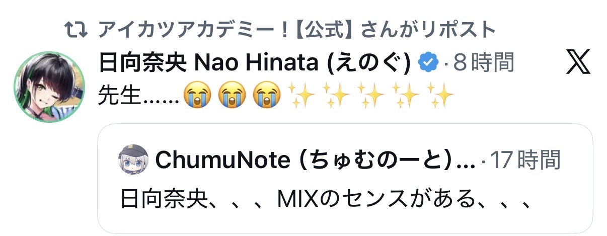 | … | 18526/03/30(月)23:00:22No.1415878406+>アイカツ広報が変なノリになったらみえる氏の就職を疑う |