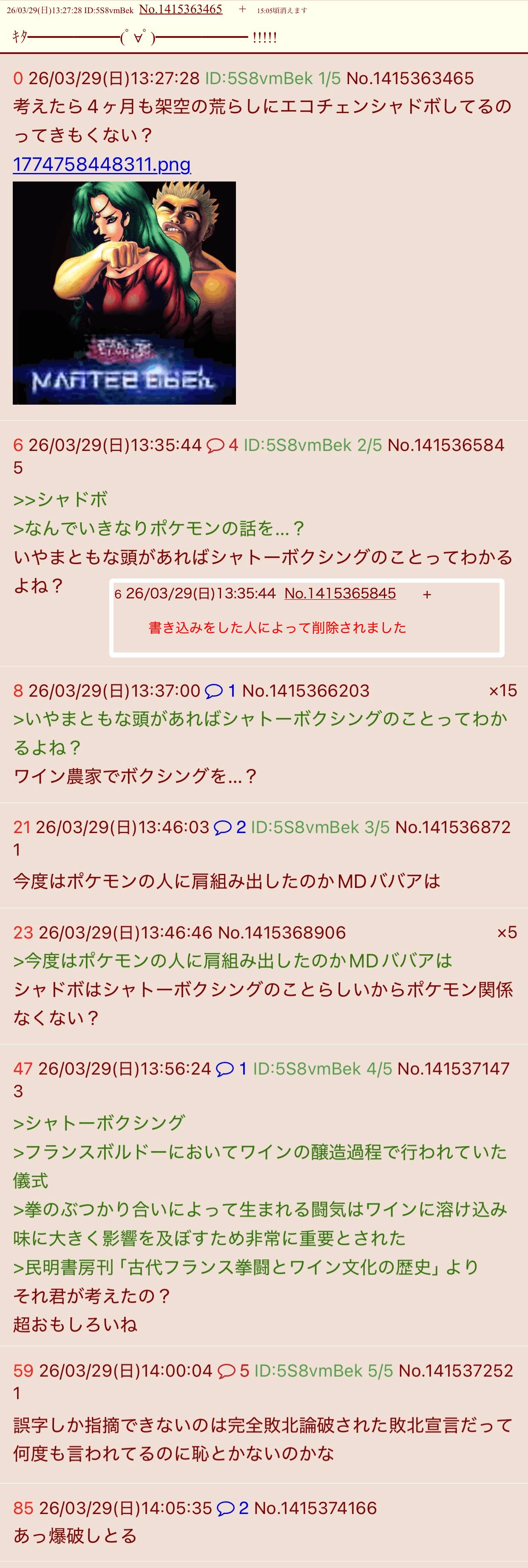 | … | 5326/03/30(月)22:46:13No.1415872516+書き込みをした人によって削除されました |