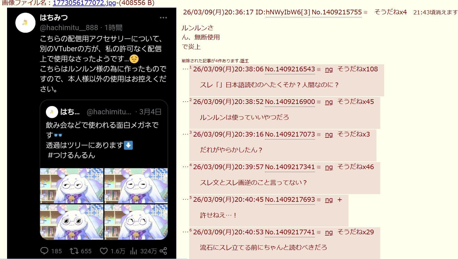 | … | 45826/03/30(月)23:27:39No.1415890821そうだねx4まさはる乱立もやってるっぽいしそっち系も荒らしてるんだろうなってのは想像に難くない |