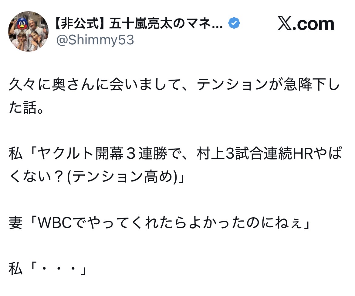| … | 726/03/31(火)12:04:57 ID:OTl0K5l.No.1415988451+東京ヤクルトスワローズ公式@swallowspr |