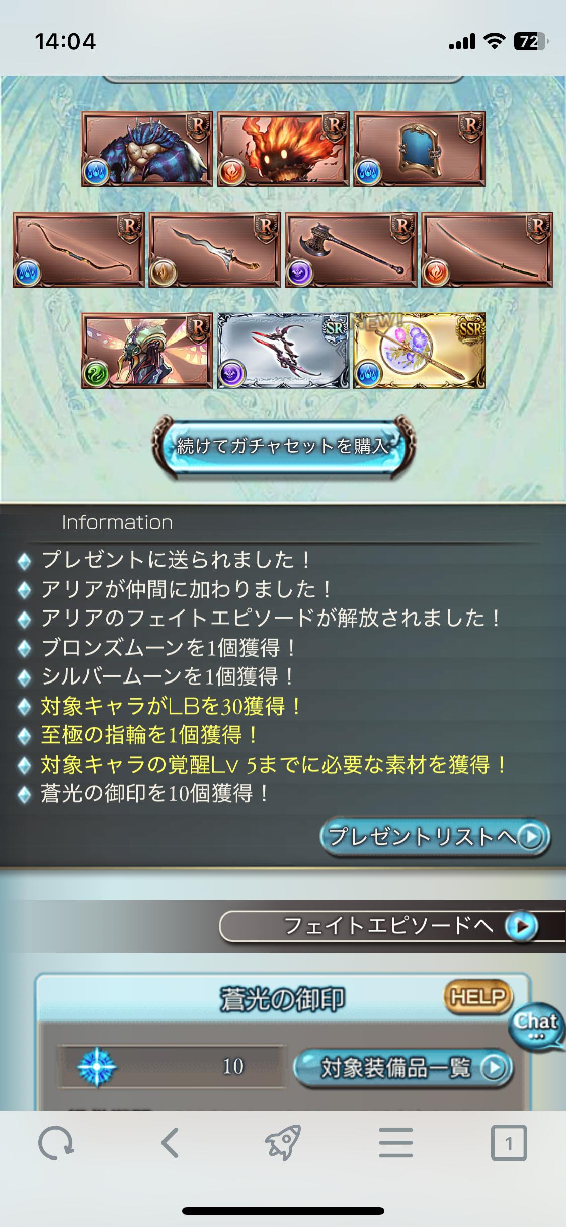 | … | 726/03/31(火)13:04:26No.1416006243+余った石で110連してアリアちゃん引けた… |