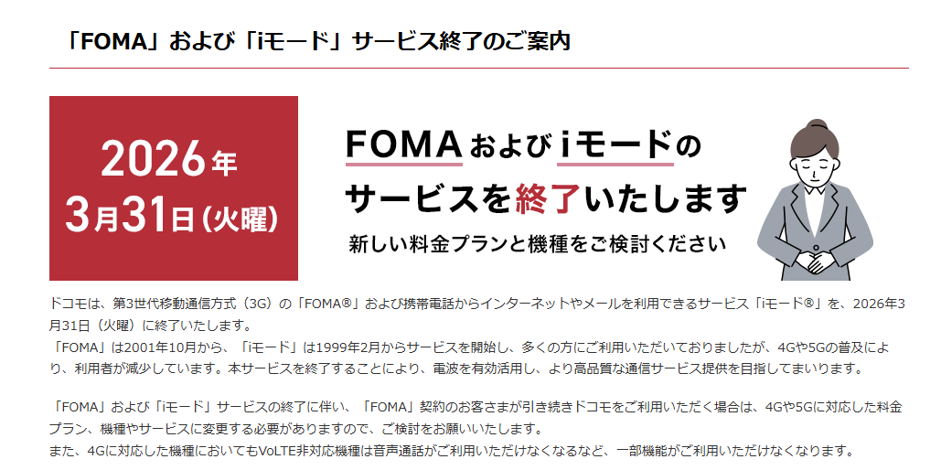FOMA終了のお知らせ