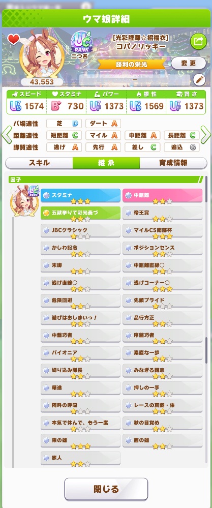 | … | 5226/03/31(火)17:07:55No.1416057307+逃げは加速アンスキでほかちょっとあればいいし当初言われてたほど因子作りこまなくていいのだな |