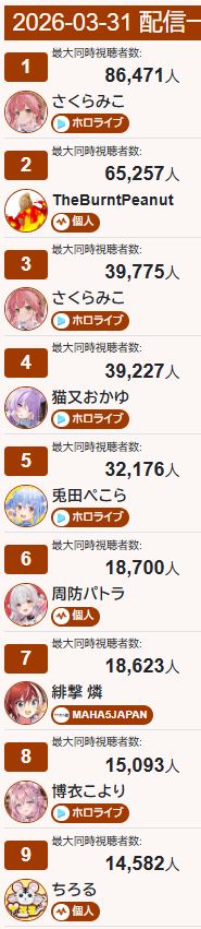 | … | 2026/03/31(火)22:19:20No.1416166886そうだねx3>V界隈の規模拡大の先頭に立ったホロが当然伸びただけで別ににじは落ちぶれた訳じゃないよ |