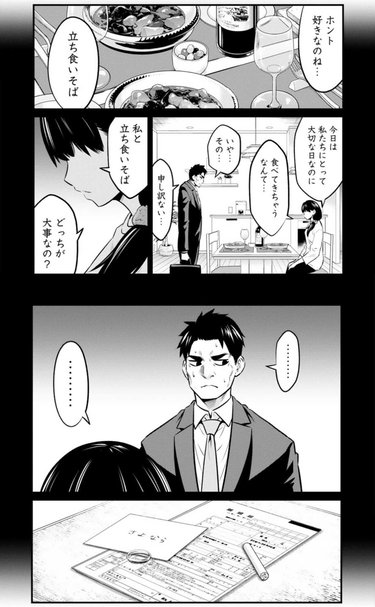 | … | 62126/03/31(火)23:37:10No.1416195042+さすがに前後にもっと話あるだろって思って読んでみたらマジでスレ画だけで本当におっさんが妻よりも蕎麦優先するカスってだけだった |