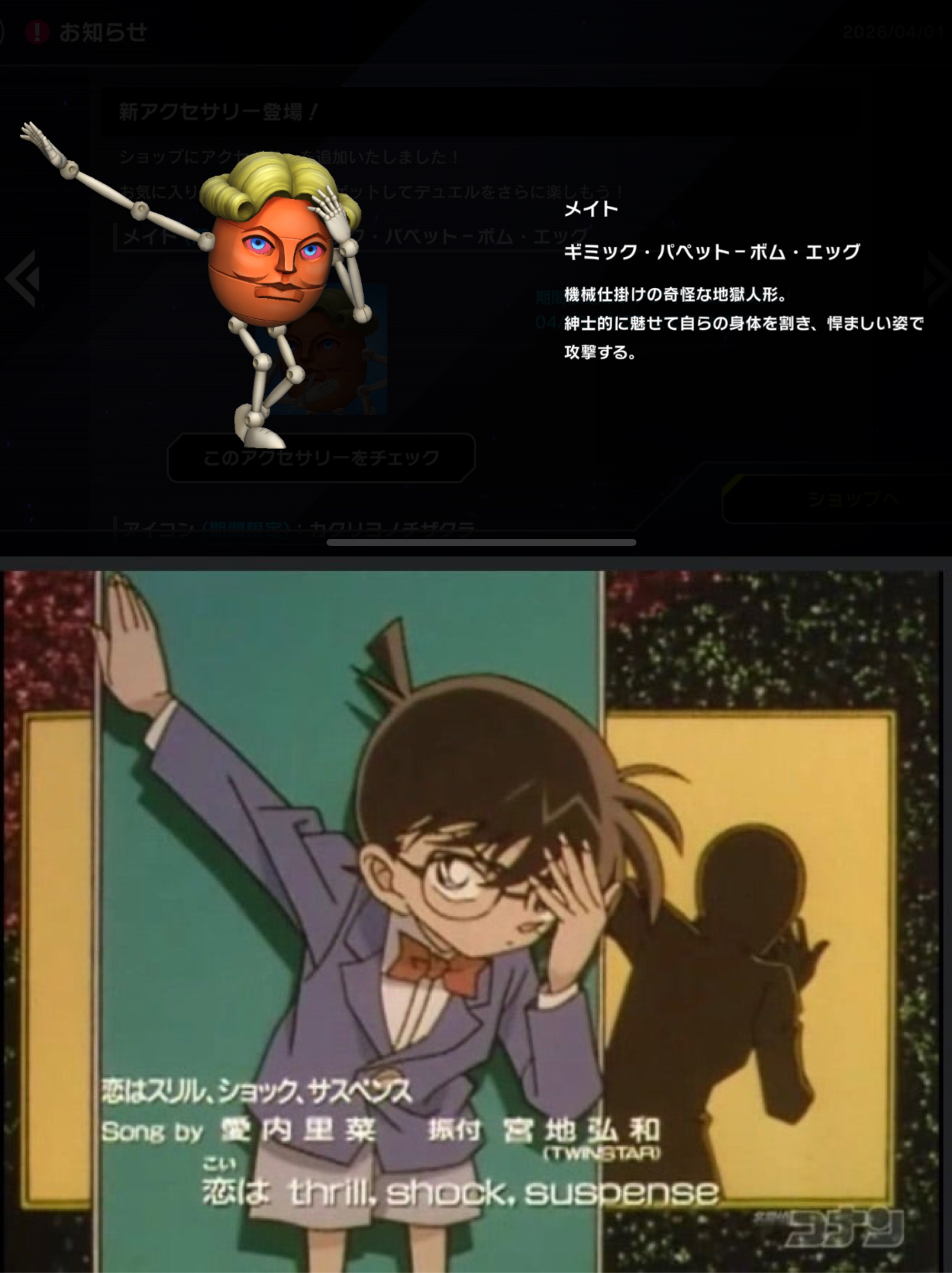 | … | 17226/04/01(水)00:52:00No.1416218537+マスターデュエル…ボムエッグのメイトとカクリヨノチザクラアイコン実装 |