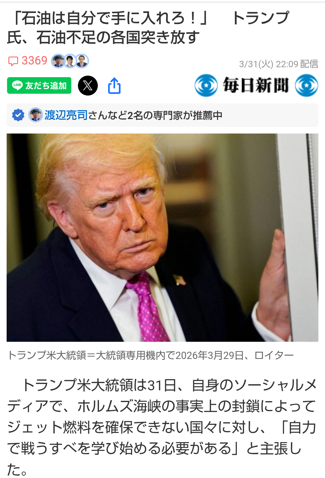 | … | 3526/04/01(水)03:40:49No.1416239699+あれだけイキっておいてホルムズ海峡の件もう諦めたのか |