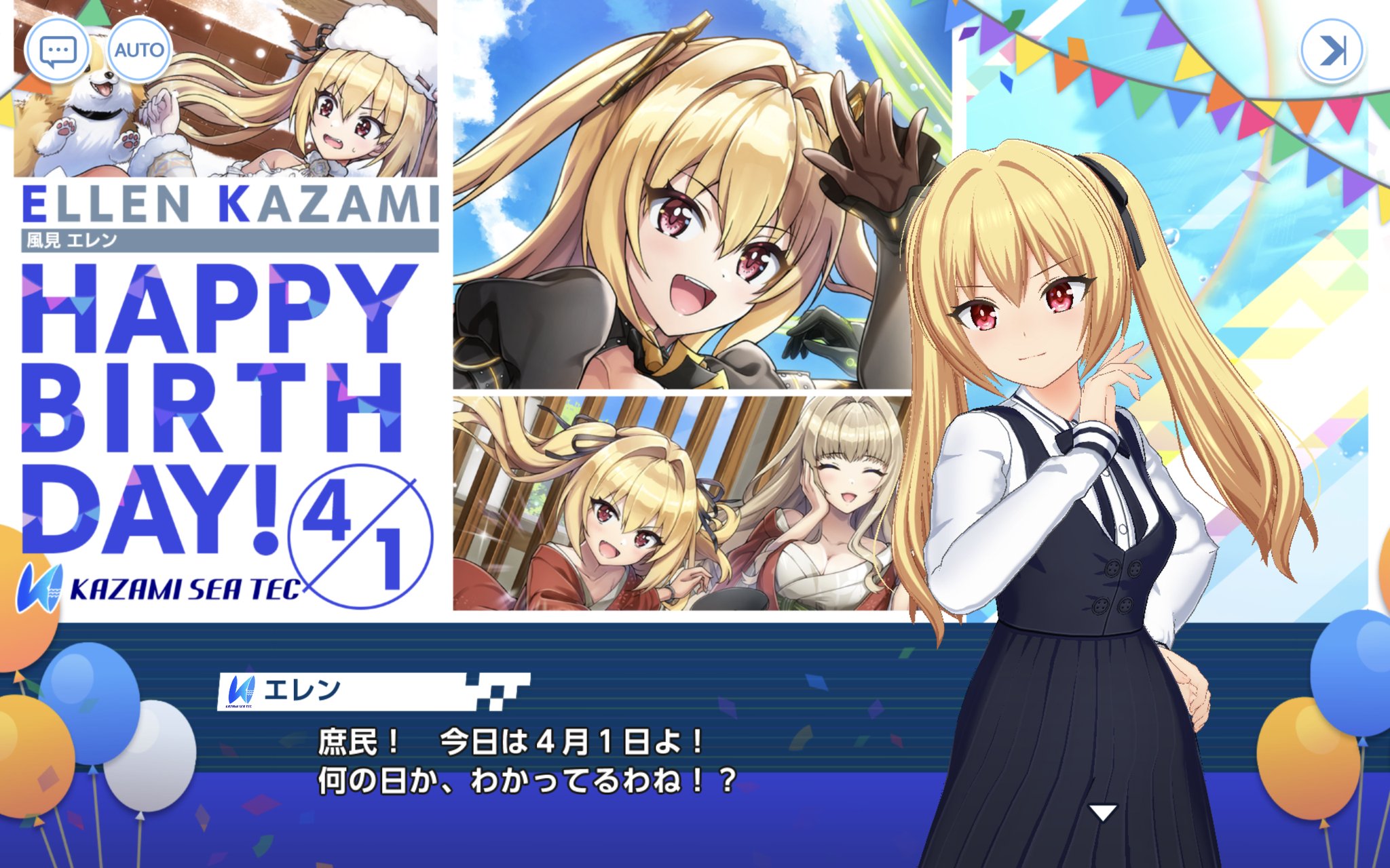 | … | 9826/04/01(水)08:43:17No.1416263804+お嬢様の誕生日とエイプリルフールのチャットが続き物みたいに繋がっててダメだった |