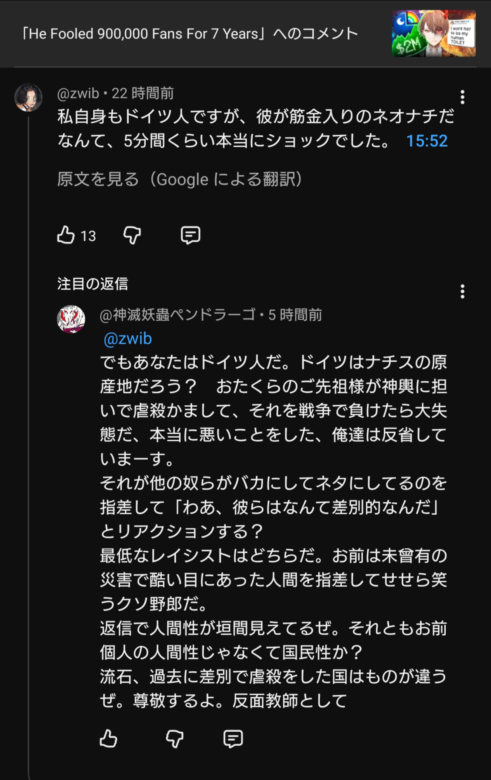 >ライバーがナチ賛美してるだけあって擁護するリスナーも半端なくやべえな…