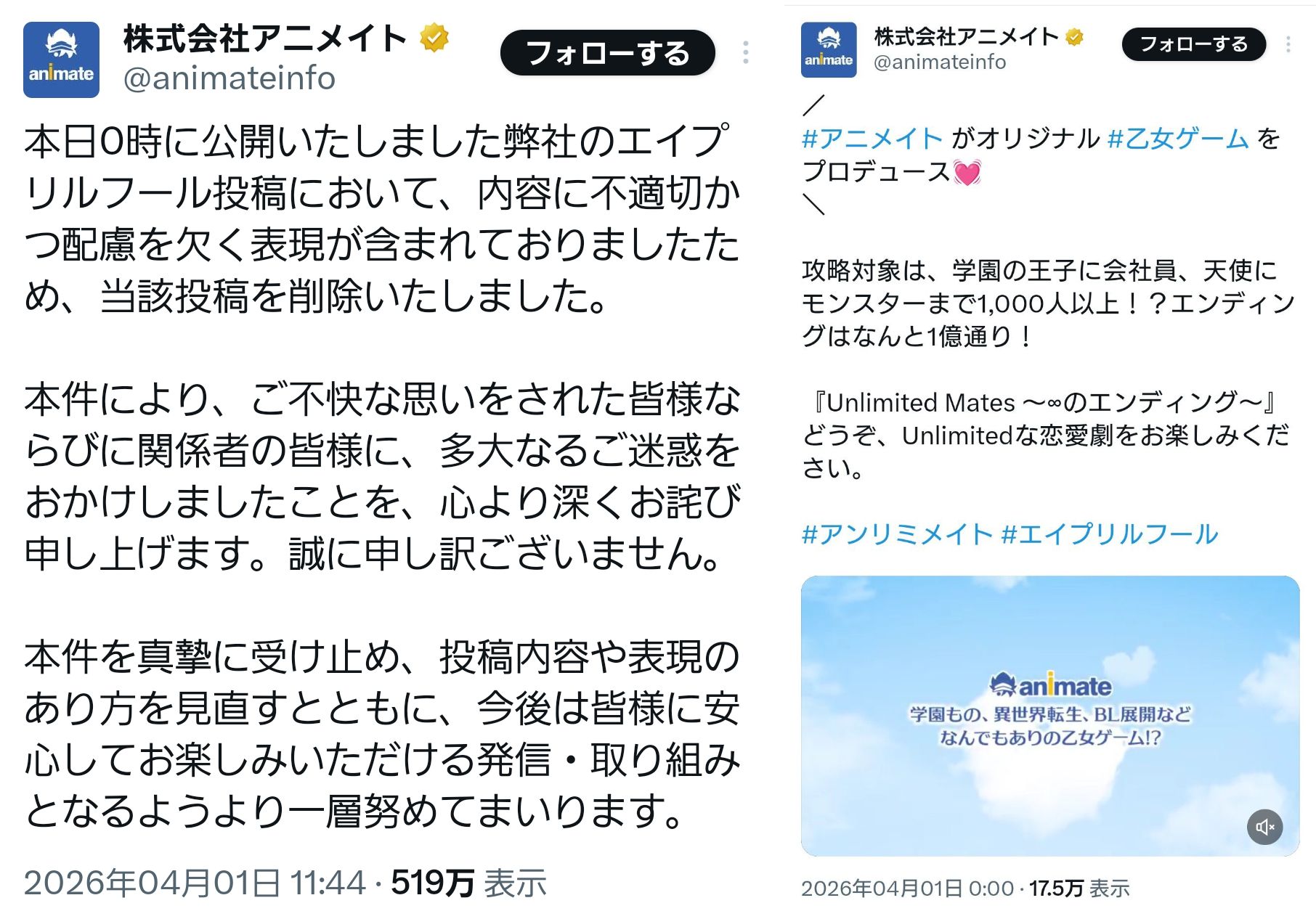 エイプリルフールだからまあなにやってんの…ぐらいに思うぐらいではある