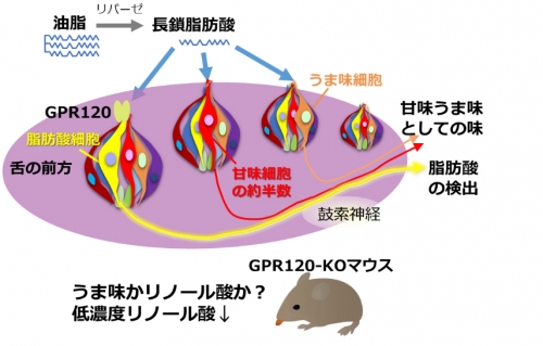 | … | 23626/04/01(水)18:07:58No.1416368028+>美味い肉の脂は甘く感じるけど味じゃないか 近年の研究で味らしいということが判明してきたよ >食べ物に含まれる油脂の存在を強く意識はできませんが、あればより好んで食べたくなります。私達はどうやって油脂の存在を知るのでしょうか?九州大学五感応用デバイス研究開発センターの安松(中野)啓子特任准教授、二ノ宮裕三特任教授らの研究グループによって、他の味とは独立して脂肪酸の味を伝える神経が鼓索神経の一部に発見されました。これは甘味、苦味、うま味、塩味、酸味の5つの基本味に加え、脂肪の味が6番目の基本味である新たな証拠となります。 https://www.kyushu-u.ac.jp/ja/researches/view/316/ fu6494197.jpg |