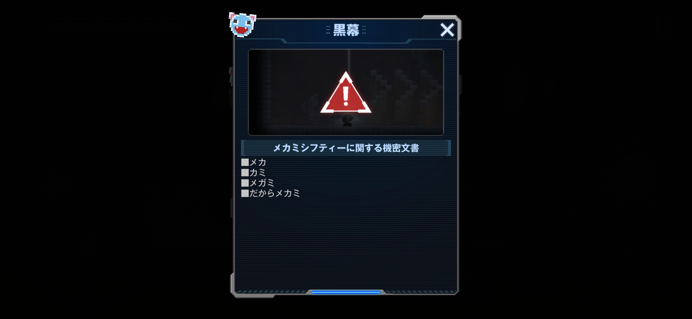 | … | 53226/04/01(水)22:29:05No.1416448996+>>>fu6495602.jpg >これどこで見れるの? 一回だけプレイできた横スクロールACTゲーでちゃんとTIPS読んでいくとある |