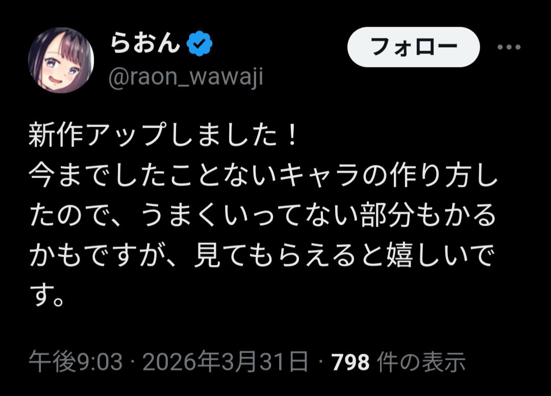 | … | 2626/04/01(水)22:49:51No.1416455412+可愛く描けるようにはなってるから次は話とコマ割りを頑張ってほしい |
