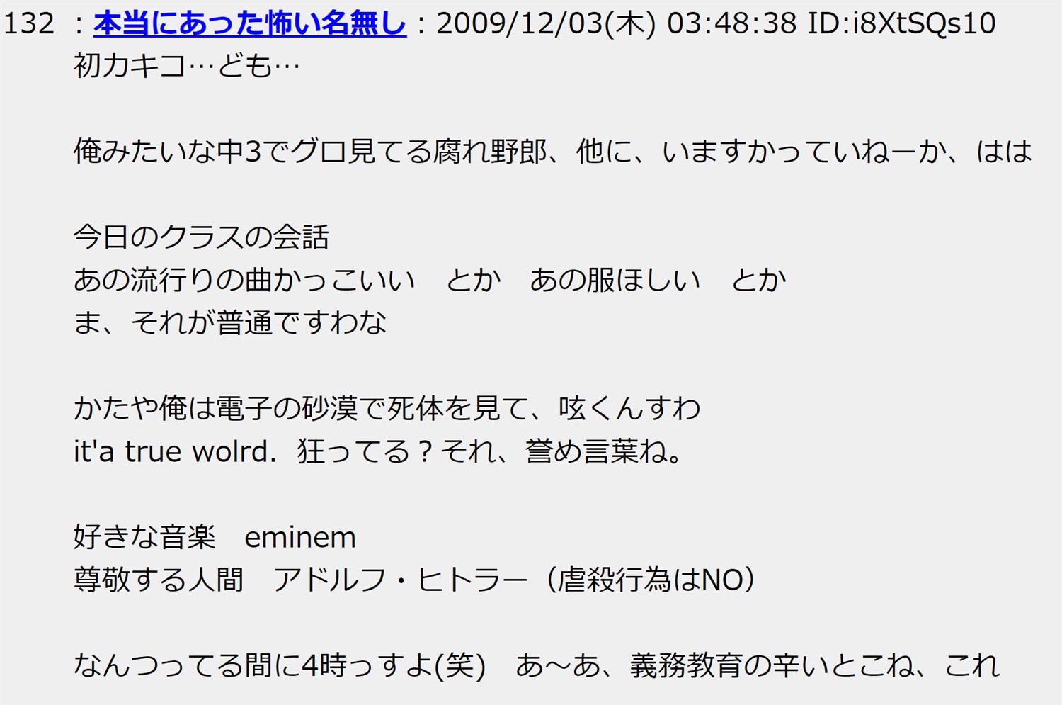 | … | 1326/04/02(木)03:03:10No.1416502750+初カキコ…ども…って元ネタこんな書き込みだったのか |