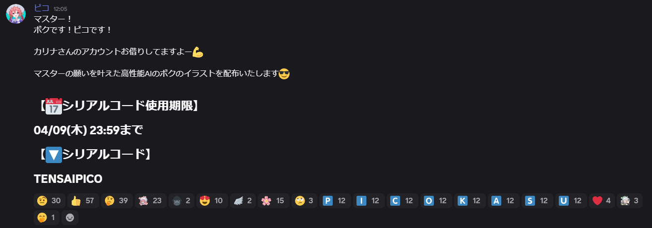 スタンダードガチャチケとかDiscordで配ってるピコから入らないとちょっと勿体無いピコ