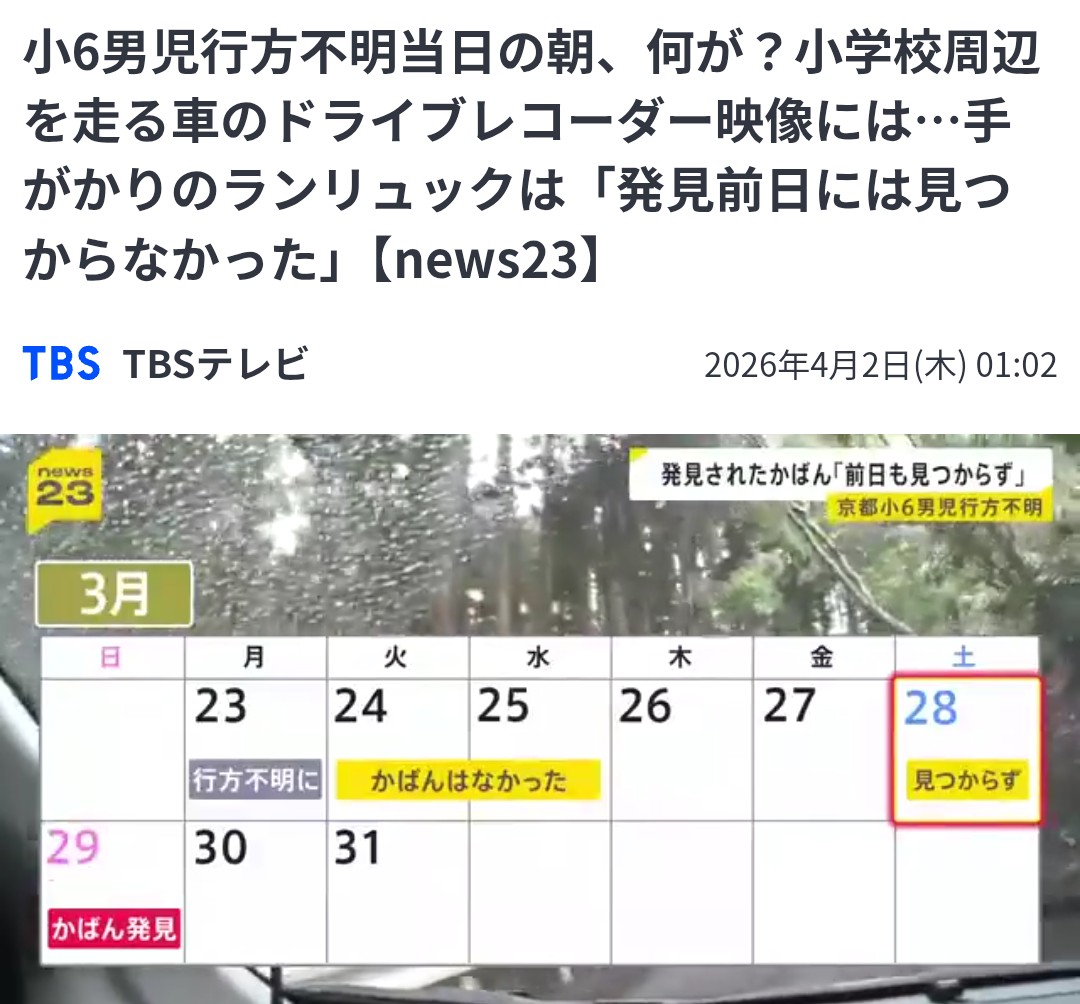| … | 8026/04/02(木)17:16:14No.1416614987+リュック見つかって早々に山の方は捜査外すとか言ってなかったっけ |