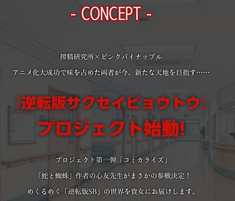 | … | 9726/04/02(木)17:00:04No.1416611832+>『逆転版サクセイビョウトウ』は当初、搾精研究所とピンパイの雑談から生まれた企画でしたが、搾精病棟ブランドの新たなプロジェクトとして本格的に取り組みを始め |