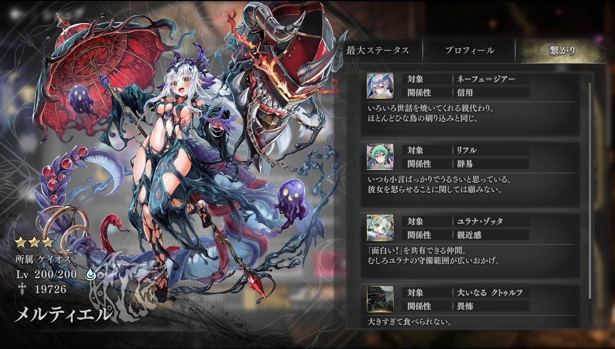 | … | 93726/04/02(木)19:30:36No.1416648290そうだねx2>コラボ限定キャラゲーになってしまうのか!? ルルイエがルルイエ陣営なのが無法なのだ 他二人は無所属なのだ |
