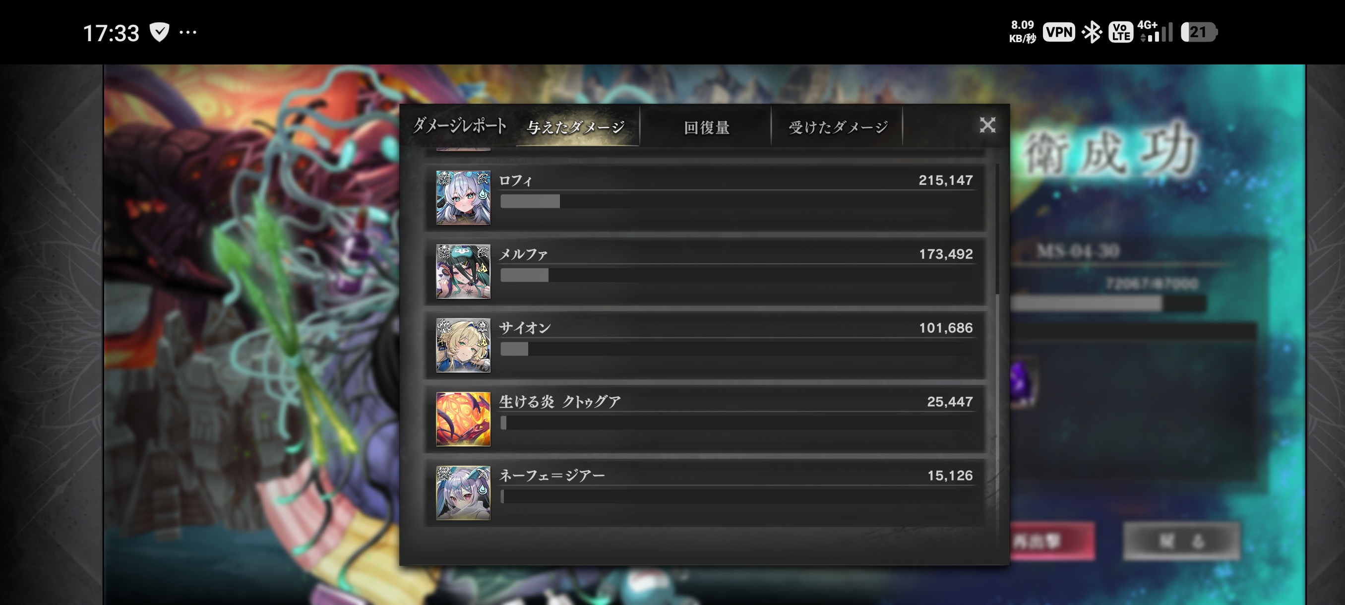 | … | 94726/04/02(木)19:31:33No.1416648586そうだねx1個人的に今回のダメージレポートで可視化されて大きかったのはロフィのダメージ貢献なのだ こういうのがあるからダメージレポートは欲しいのだ |