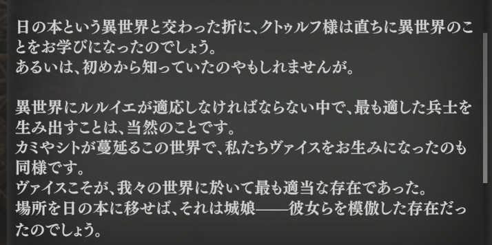 | … | 89026/04/02(木)19:17:10No.1416644491+まあクトゥルフ様がお城の子を見てからルルイエちゃんを産むはずなのでストーリー中に誕生するはずなのだわ |