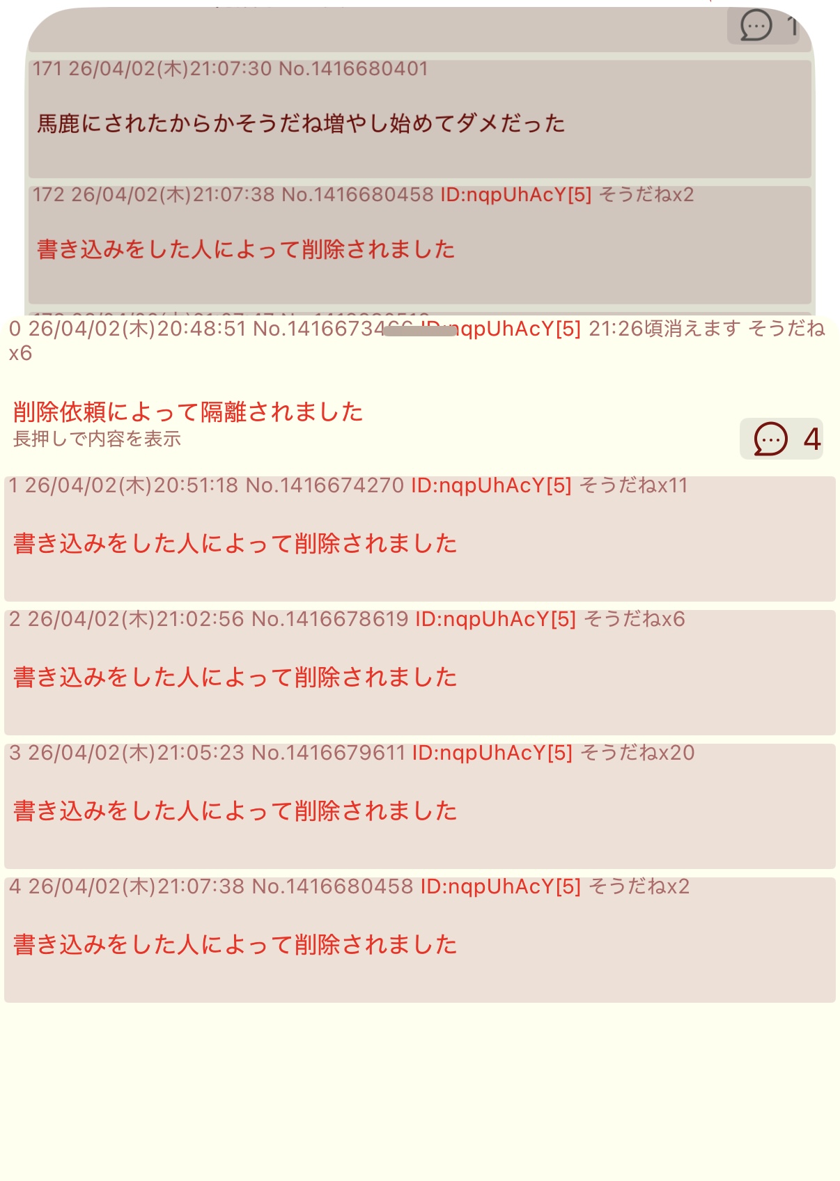 | … | 25926/04/02(木)21:19:51No.1416685269そうだねx1>書き込みをした人によって削除されました |