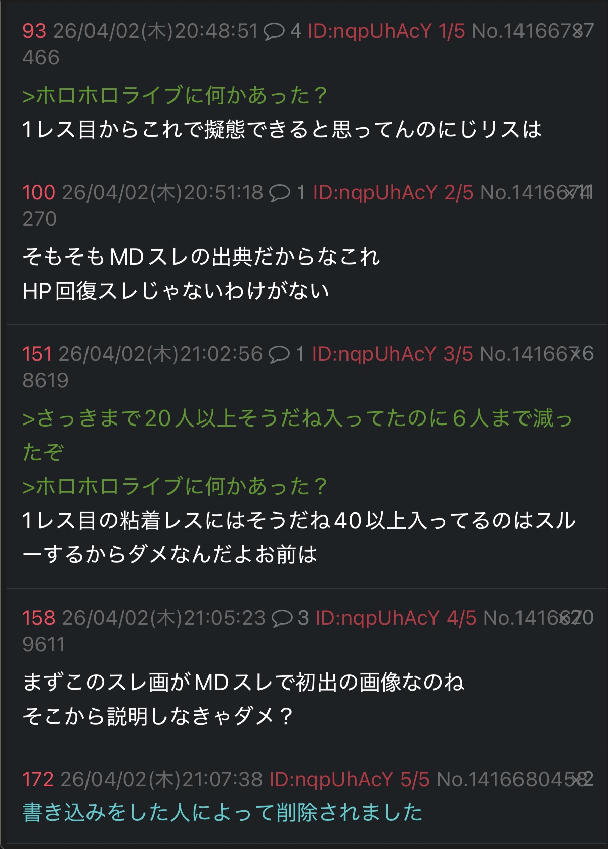 | … | 1026/04/02(木)20:06:20No.1416659190そうだねx14ホロキチさん遅いな… |