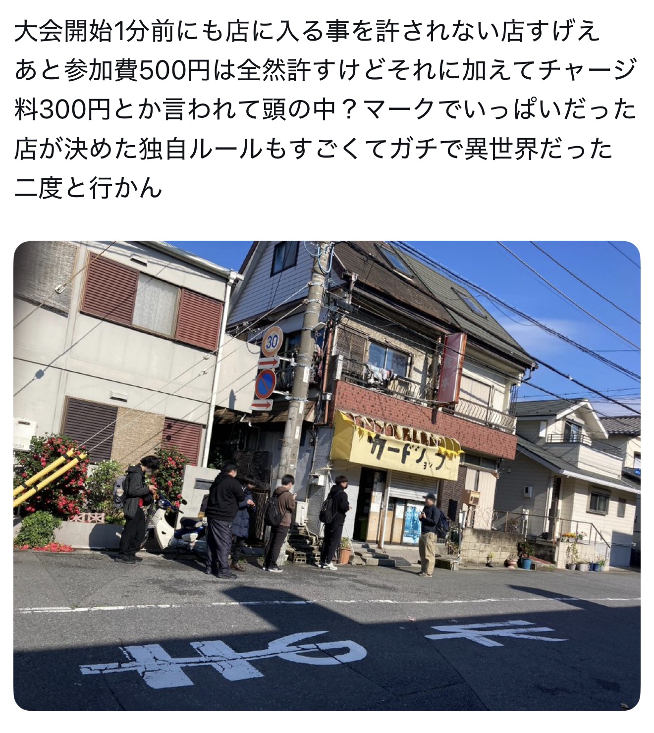 | … | 8326/04/02(木)21:19:28No.1416685108そうだねx3大会参加費500円で席利用が300円で店が狭いから大会開始前入店不可って書くとまぁそんなもんかなって |