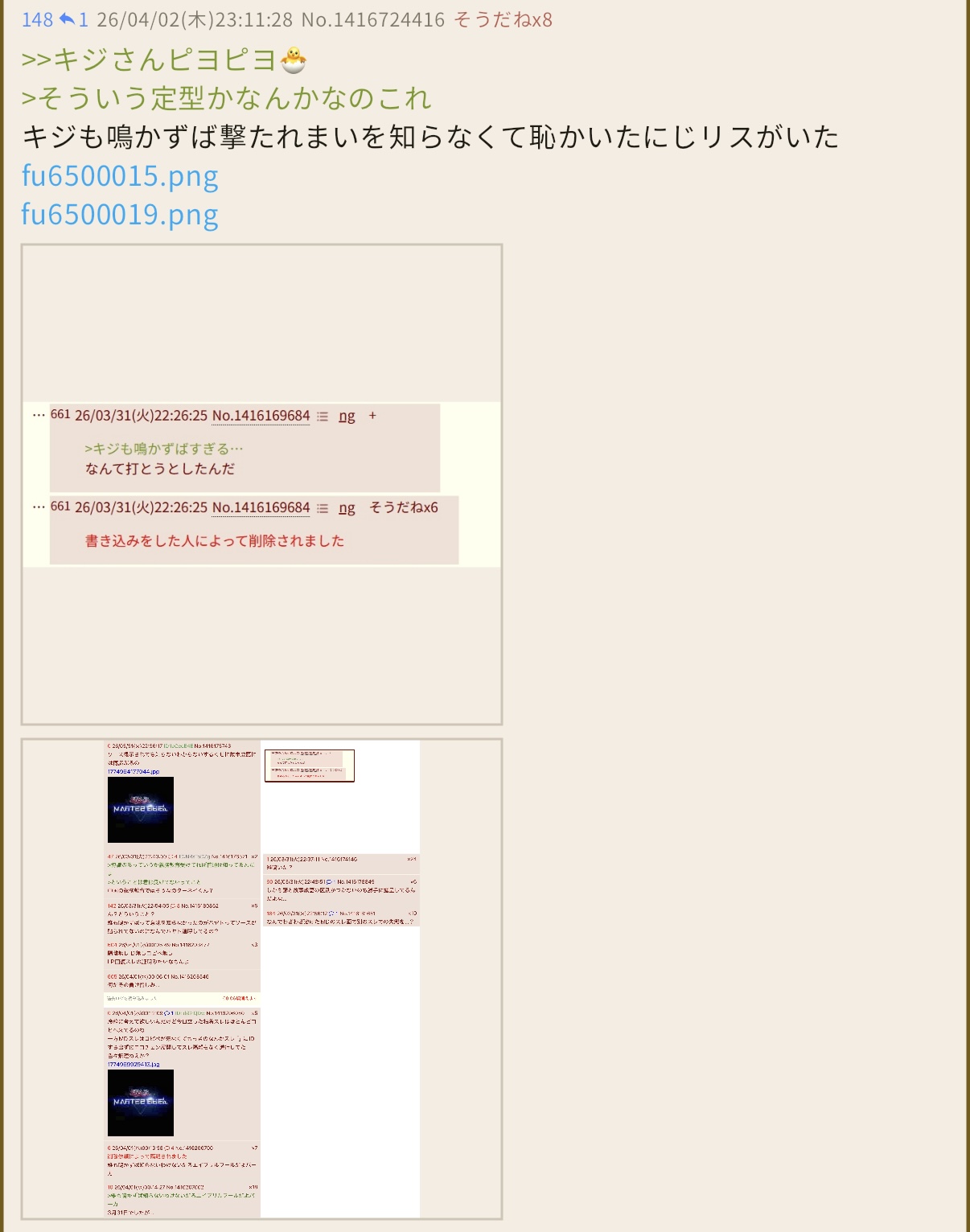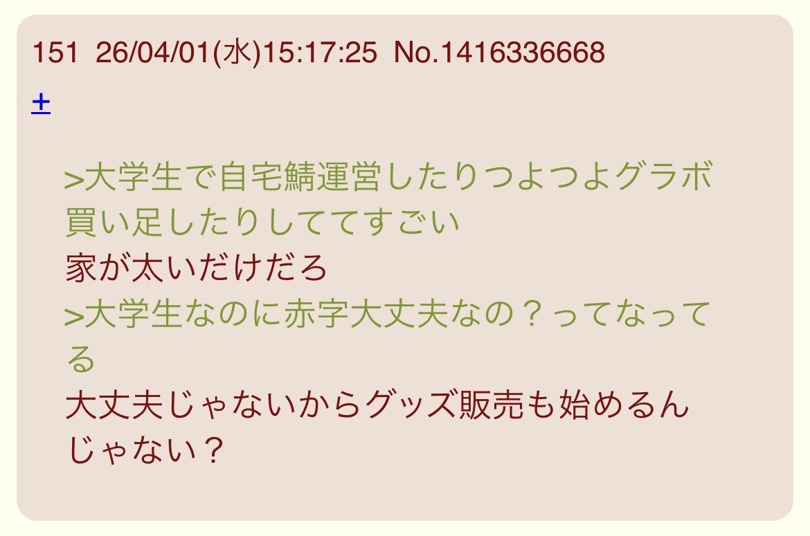 | … | 20426/04/03(金)01:23:31No.1416756842そうだねx1自認ふたばの管理人だし |