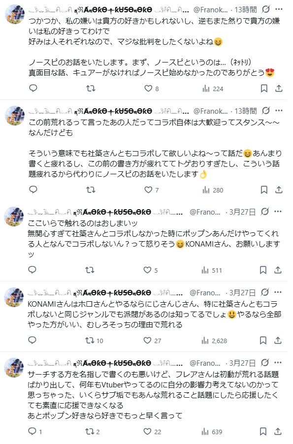 | … | 1226/04/03(金)01:08:19No.1416754366そうだねx22お前が荒らしてるんだからにじさんじとコラボしたら荒らさねぇってだけだろ |