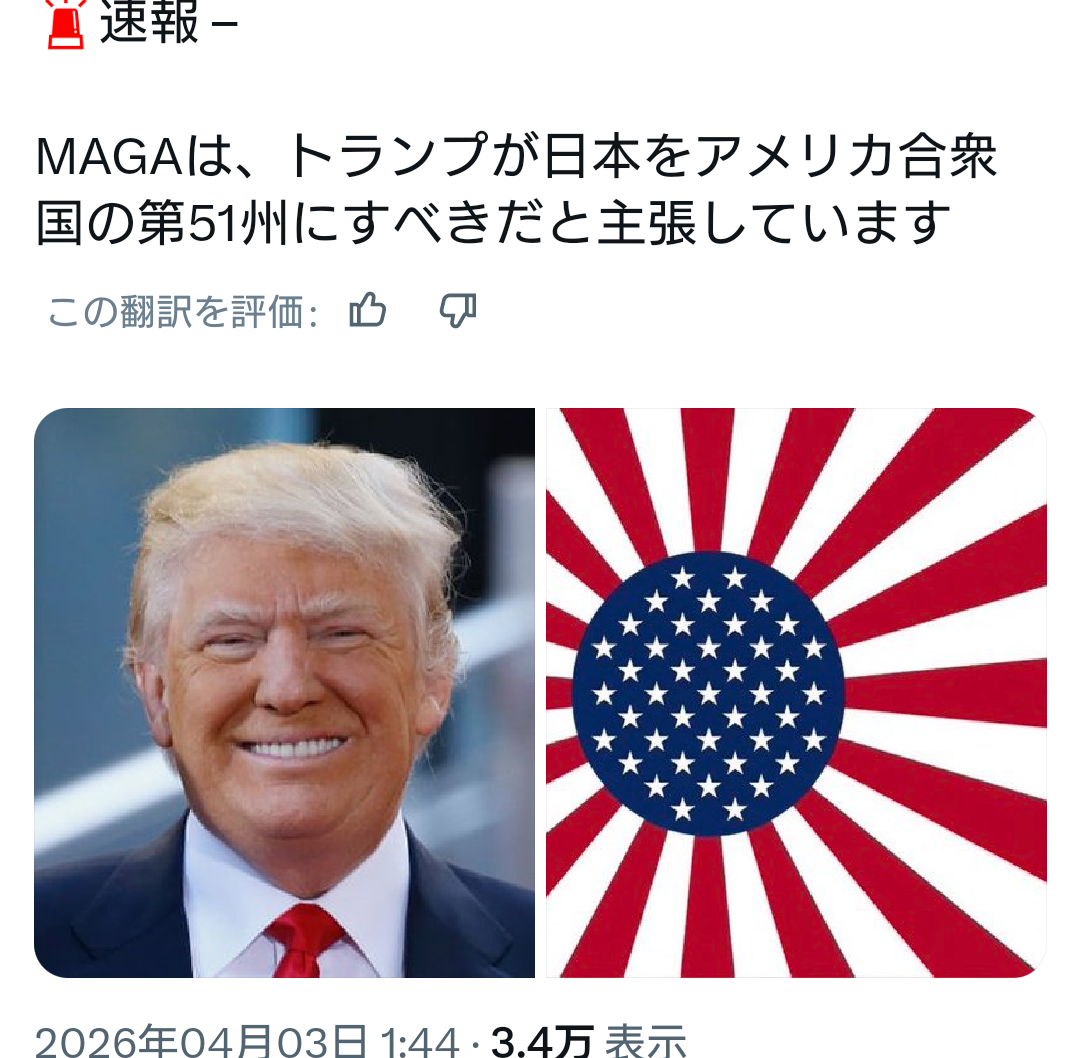 | … | 75126/04/03(金)09:33:20No.1416792846+これ日本がアメリカ飲み込んでない? |