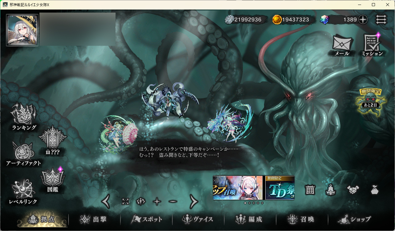 | … | 96426/04/03(金)13:14:33No.1416832762+>とりあえずはじめてみたけどガチャいっぱいあってどれ回せばいいのだ? ルルイエ様が取れた方がいいとは思うのだ |