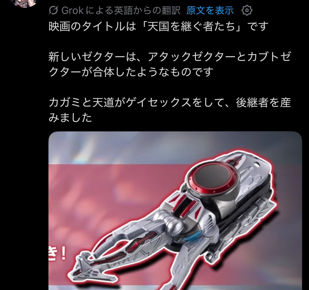 | … | 7526/04/03(金)15:11:35No.1416857247+シンプルにカブトの色変えとゼクターだけの変更でよかった |