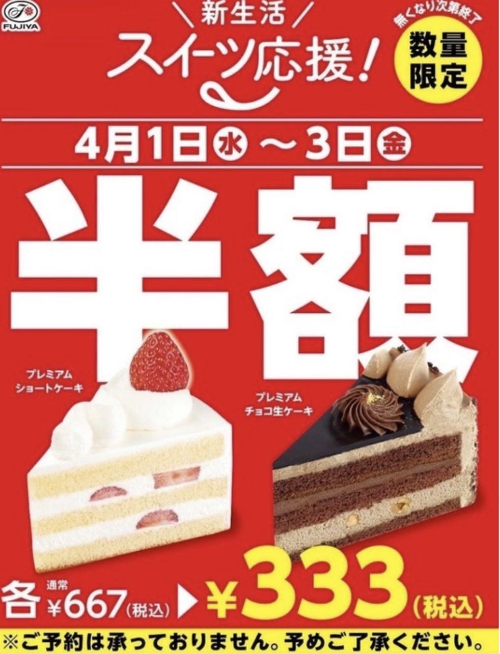 | … | 8026/04/03(金)15:53:20No.1416865615そうだねx1半額どうこうよりケーキ1つが670円すんのか不二家 |
