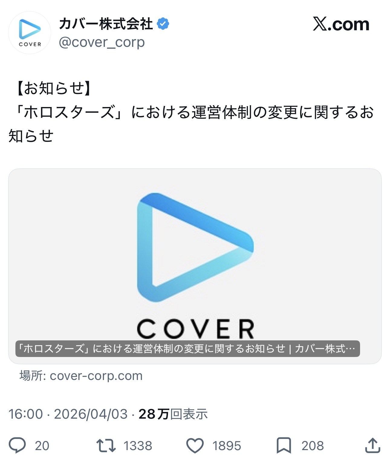 ホロスタがカバーから切り捨てられる