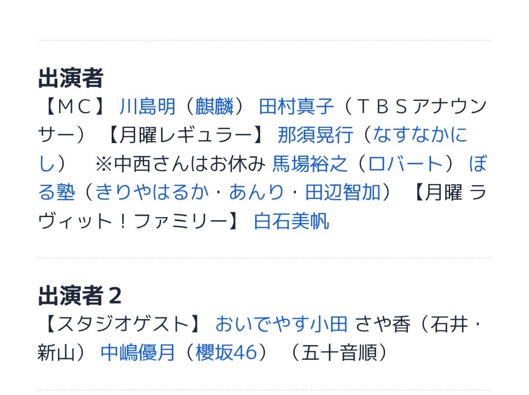 | … | 5726/04/03(金)18:00:56No.1416893593+アナウンサーのプロフィール見てると南波が火水担当になってるから出番減ってくんだろうか |