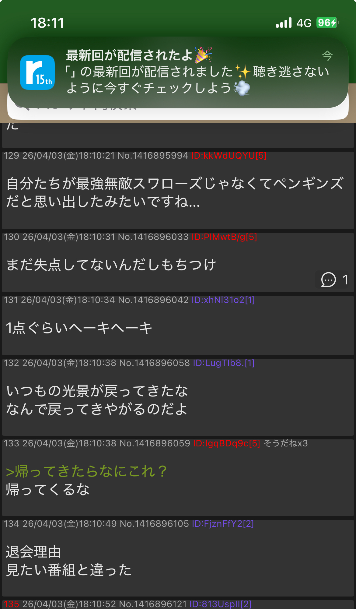 | … | 81426/04/03(金)19:23:00 ID:FjznFfY2No.1416918404+連覇球団ヤクルトスワローズの皮が脱げて🐧になり始めてますね… |
