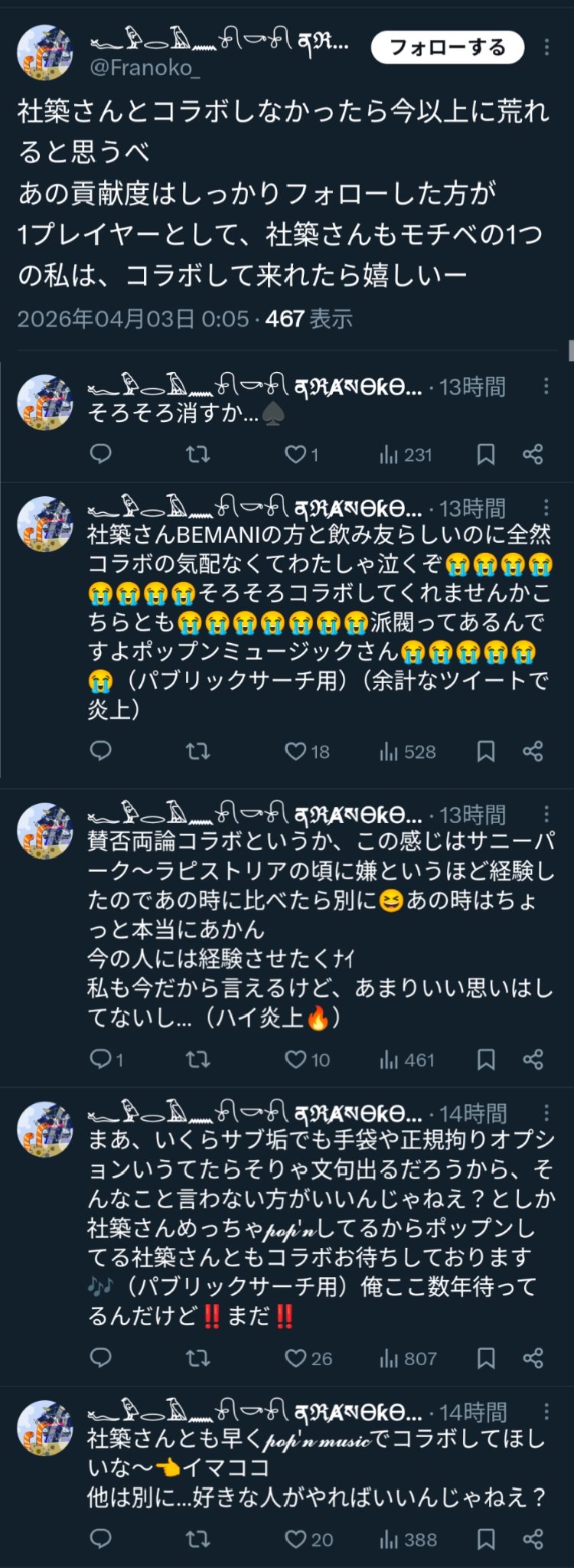 | … | 3326/04/03(金)18:15:45No.1416897409そうだねx12>社畜 ポップンで調べるとそもそも最終が3/25のポストなんだけど |
