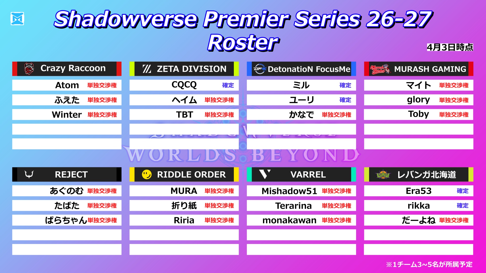 | … | 1326/04/03(金)20:24:24No.1416941235+3チーム… |