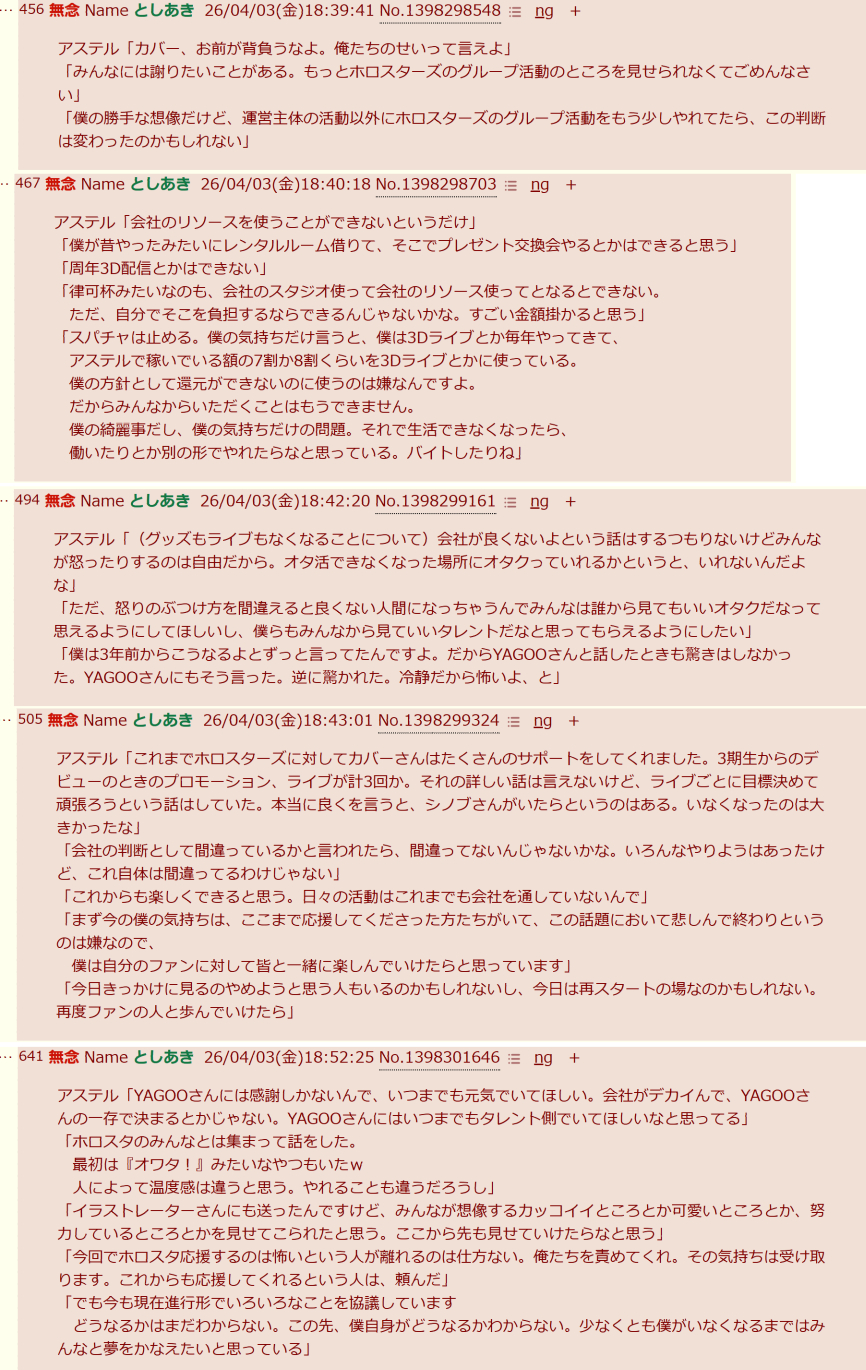 | … | 5226/04/03(金)23:48:46 ID:tG.ii/6wNo.1417019734そうだねx7ところでこれ方向性としてはネガティブな情報だと思うし前々からホロスタのメンバーには話言ってたらしいけどリーカーさんはなんでこれリークしなかったんですか? |