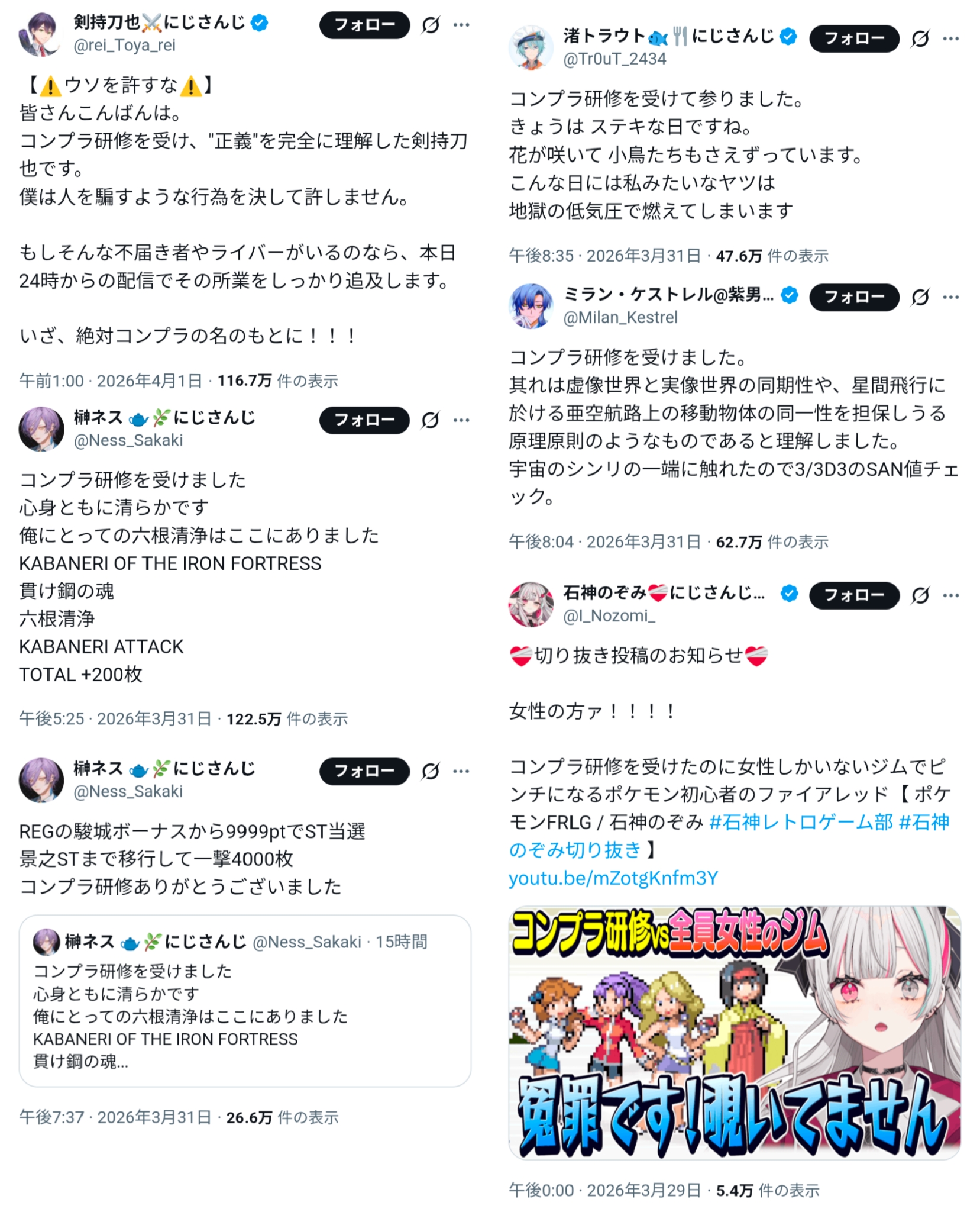 | … | 2026/04/05(日)09:41:32No.1417421883+>5年前ぐらいのお笑い芸人もこんな感じのスタンスだったからセーフ |