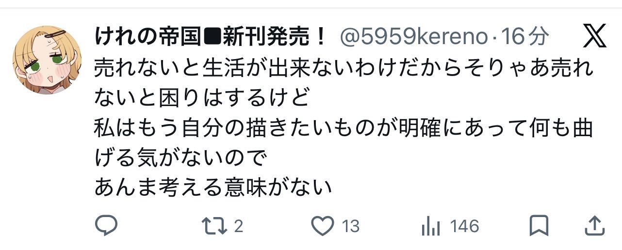 | … | 726/04/05(日)12:20:24No.1417459631そうだねx2同人作家としては正しい |