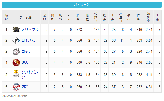 | … | 24526/04/05(日)17:16:16 ID:EhDLE/32No.1417540902+>序盤とはいえ去年のチーム打率低すぎる… |