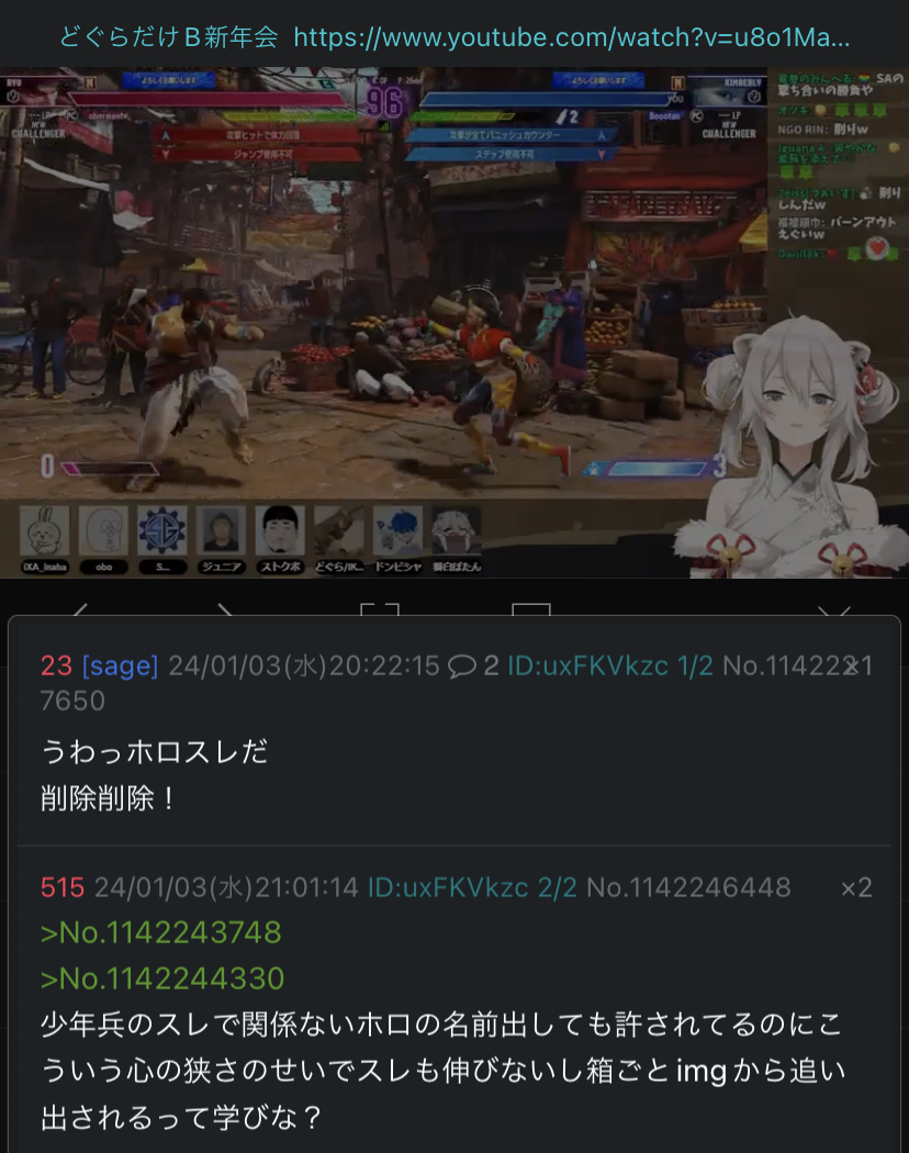 | … | 726/04/05(日)17:22:13No.1417542552そうだねx9>こいつmayでスクショ晒された瞬間にホロアンじゃないですうううううって叫び始めたんだけどこれってさ… |