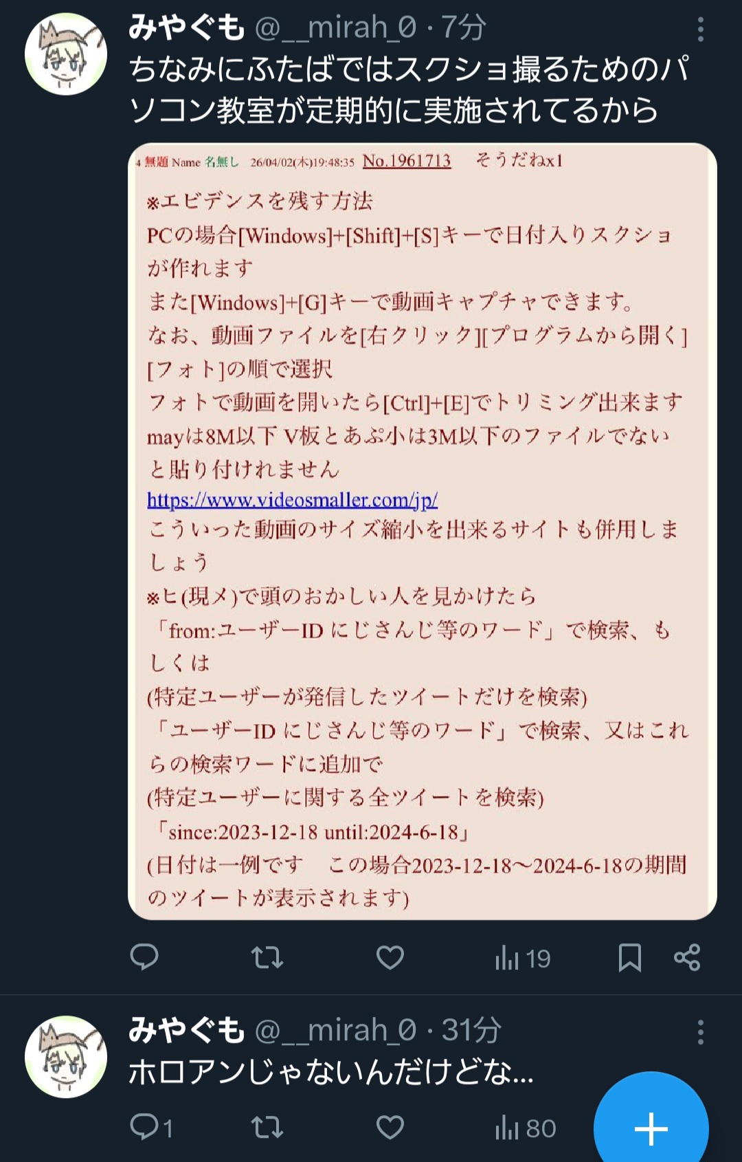 | … | 6126/04/05(日)17:56:28No.1417552568+>https://x.com/__mirah_0/status/2036008234356736186 |