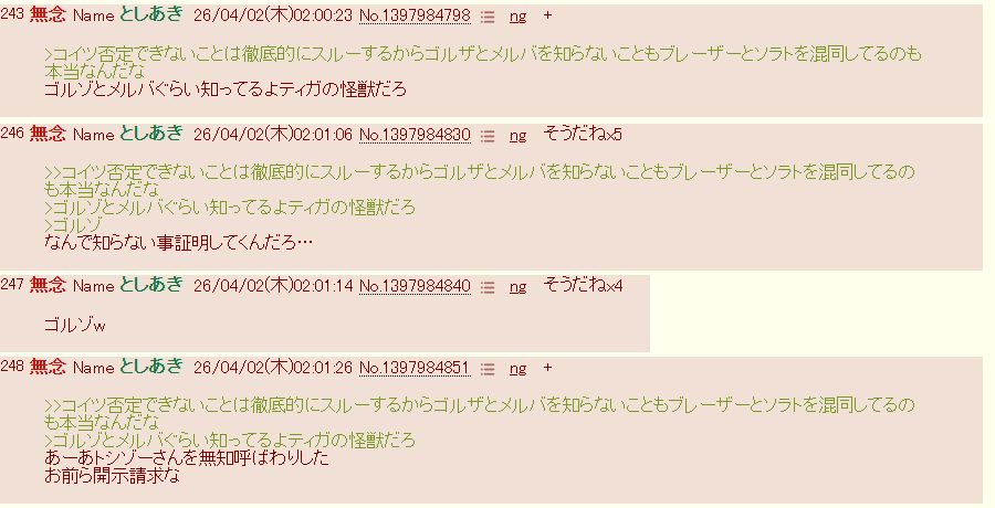 >外したら俺は二度とふたばに書き込まないし虹裏としぞうと新トシゾーのアカウントも消してネットから居なくなる
